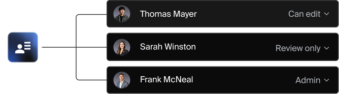 Customize permissions to reflect your firm’s governance. Configure override policies, review stages, and sign-off rules to mirror internal processes